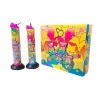- 尺寸大小外盒長15.5公分、寬14公分、高4.5公分;本體長12.5公分、底座外徑4.45公分;效果藥管長11.8公分、外徑2.3公分;最小包裝6個