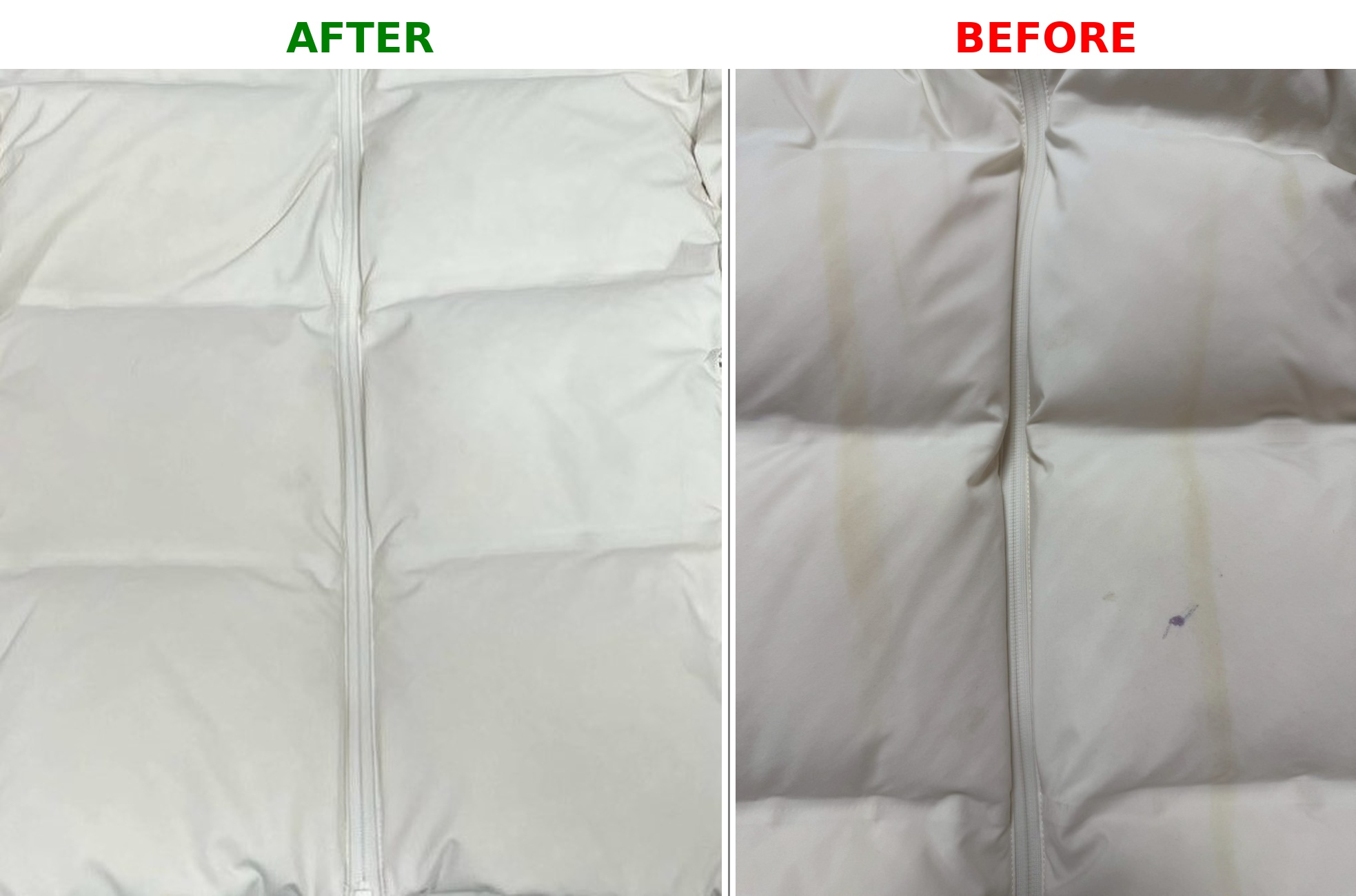壓膠羽絨外套多處泛黃清洗