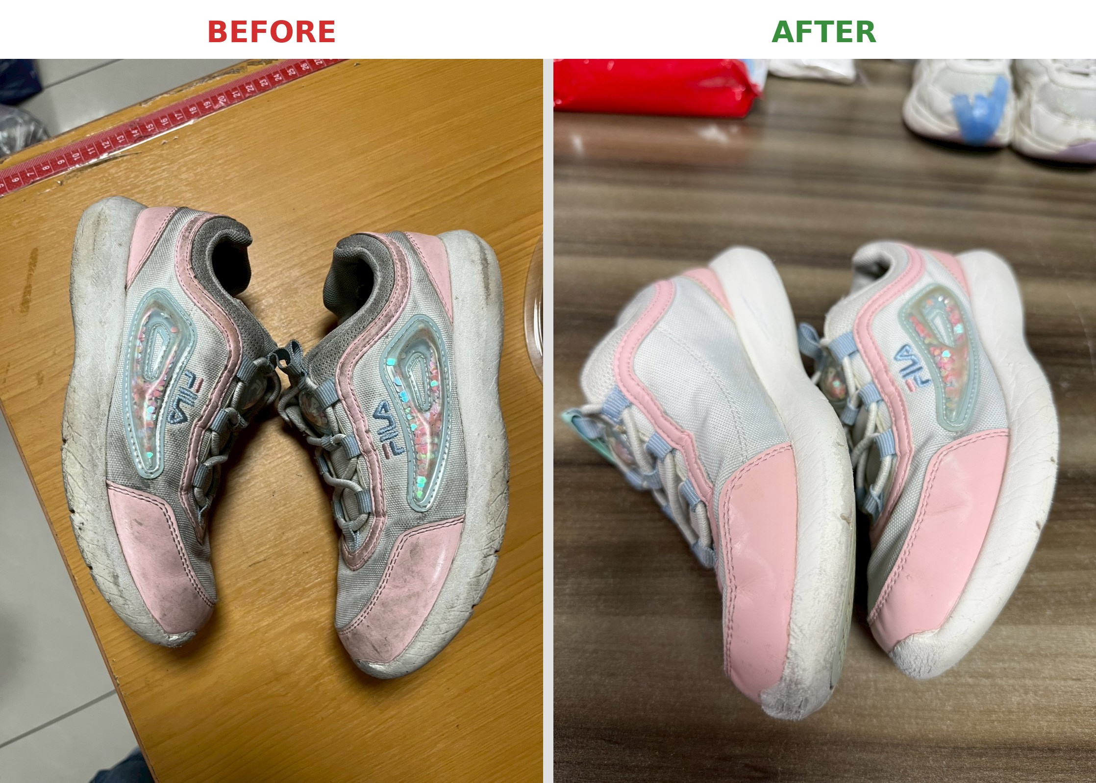 Then there's the mesh upper, which needs to look bright and clean. Without the right emulsifying agents to break down stains and proper brushing techniques, the mesh can end up still looking dull—or worse, develop pilling and fiber damage.