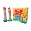 - 尺寸大小外盒長15.5公分、寬14公分、高4.5公分;本體長12.5公分、底座外徑4.45公分;效果藥管長11.8公分、外徑2.3公分;最小包裝6個