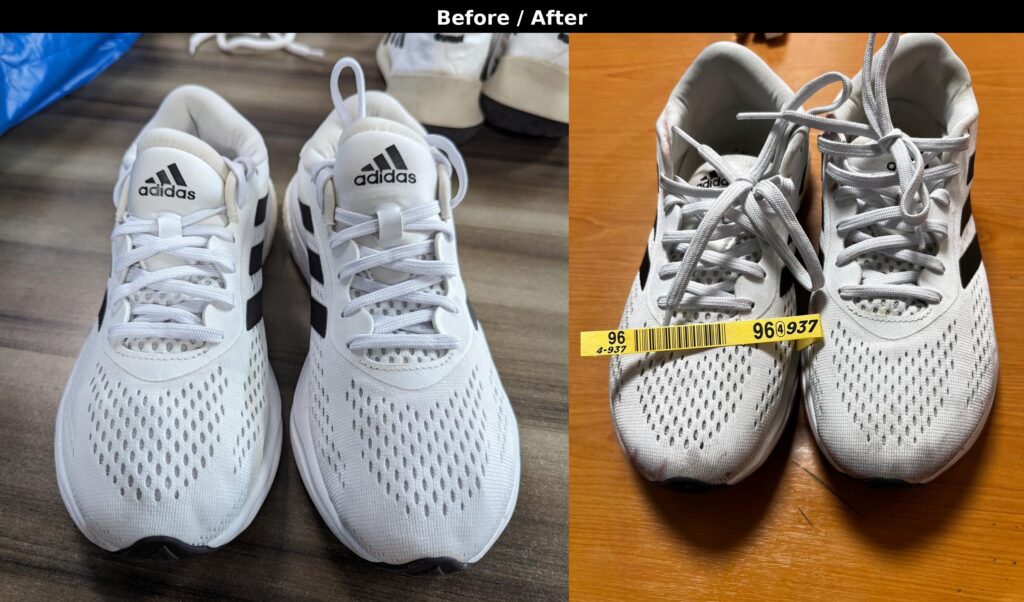 運動鞋專業清潔與護理 — 針對布面、網布、皮革、合成材質與橡膠大底採用分區處理流程。服務流程包含:送件檢查(鞋款材質、顏色牢度、鞋底狀況、鞋墊與鞋帶是否需另行處理)、預處理去污(針對泥漬、油漬、汗漬、鞋底黃漬使用專業去污劑和軟毛刷)、材質分流(布面/網布採低強度清洗、真皮/合成皮採特殊皮革清潔保養)、超聲波或弱力機洗(視鞋款與標籤而定)或手工清洗、除臭抗菌處理(消除異味與細菌)、低速脫水與自然陰乾(避免高溫烘乾造成變形或膠合層剝離)、最後做鞋型整形、鞋墊回復與防水/護色處理(根據需求),並提供清潔前後照片與維護建議。